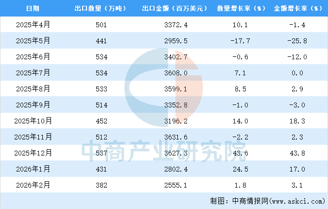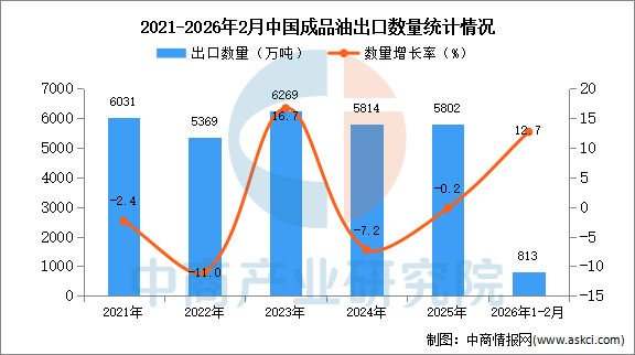2026年1-2月中國(guó)成品油出口數(shù)據(jù)統(tǒng)計(jì)分析:出口量同比增長(zhǎng)12.7%