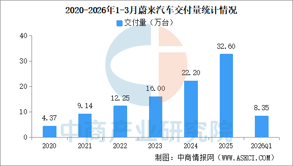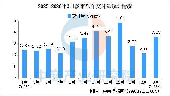 2026年3月蔚來汽車交付量情況:交付量同比增長136.0%(圖)